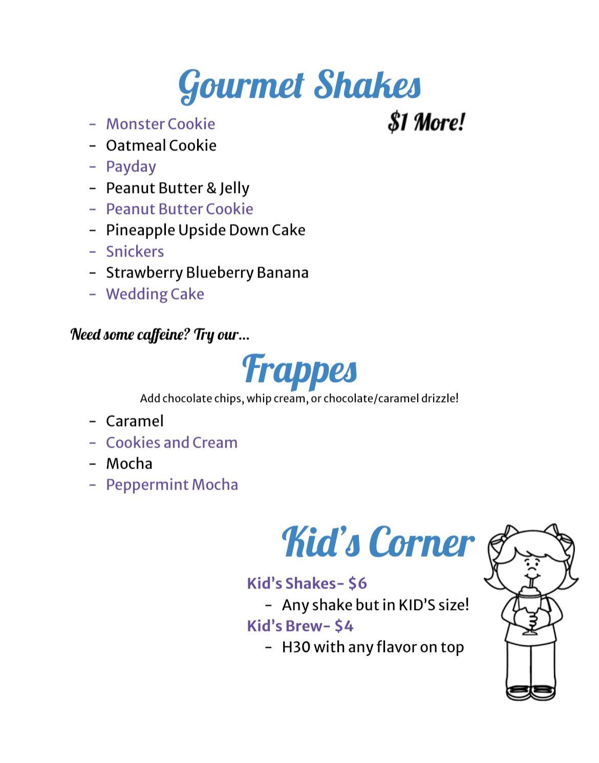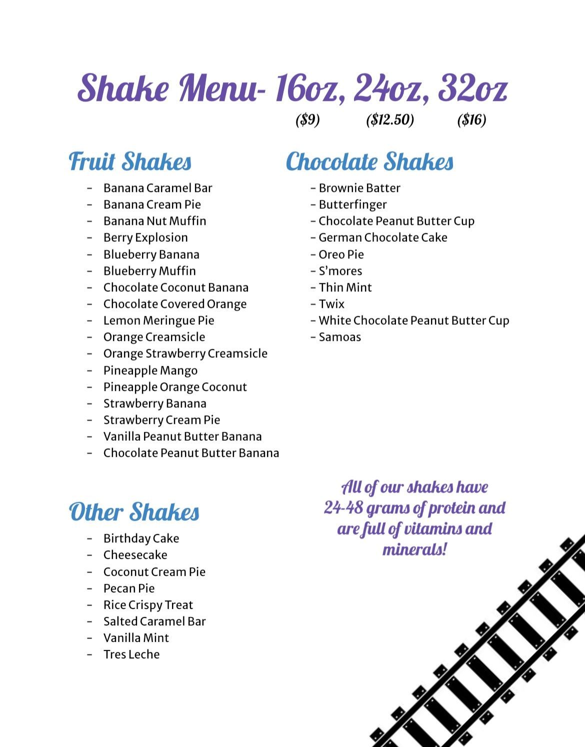 We offer three different sizes of protein shakes, including kid's!